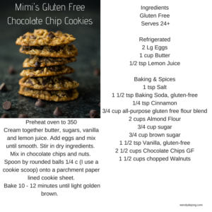 Whip up a batch of Mimi’s Gluten Free Chocolate Chip Cookies and let me know what you think.
